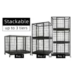 - STACKABLE Cage; Size: 37″L x 22″W x 31″H; Side Bar Space: 1″, Floor Grid Bar Space: 0.48″; fits for dogs/animals up to 25-50 lbs