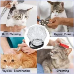 Cat Muzzle with 4Pcs Paw Cover Grooming Anti Bite Breathable Protective Space Hood Cats Helmet Mask Adjustable