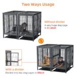 - With a divider panel, easily change into 2 small crates for 2 dogs.