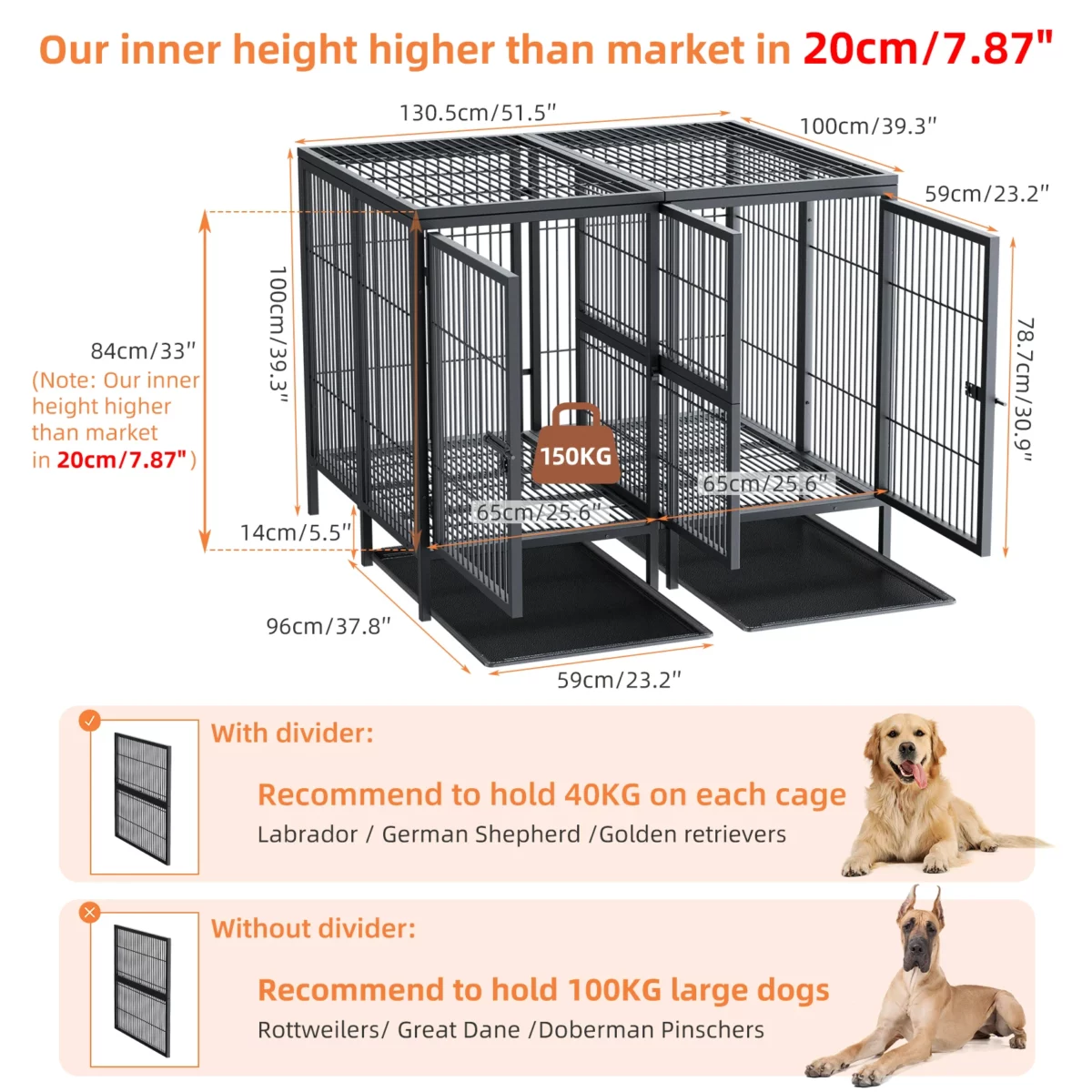 Jumbo Large Dog Heavy Duty Metal Cage Pet Playpen Crate Kennel House with Steel Lock and Removable Trays Double Door